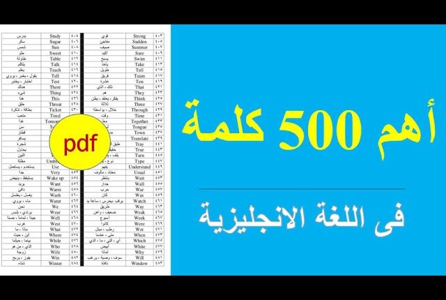 أهم 500 كلمة في اللغة الإنجليزية للمبتدئين والمتقدمين (ملف PDF جاهز)