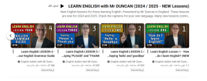 تعد قناة English with Mr Duncan واحدة من القنوات التعليمية المميزة على يوتيوب لتعلم اللغة الإنجليزية، خاصة للمبتدئين.