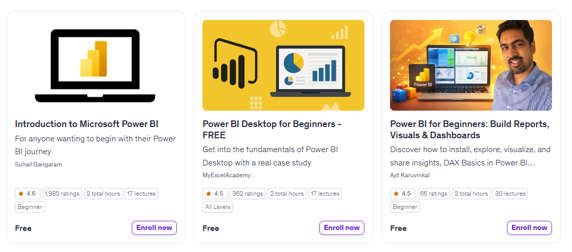 بالإضافة إلى ذلك تتميز دورات تعلم Power BI على يودمي بأنها مصممة لتناسب جميع المستويات.